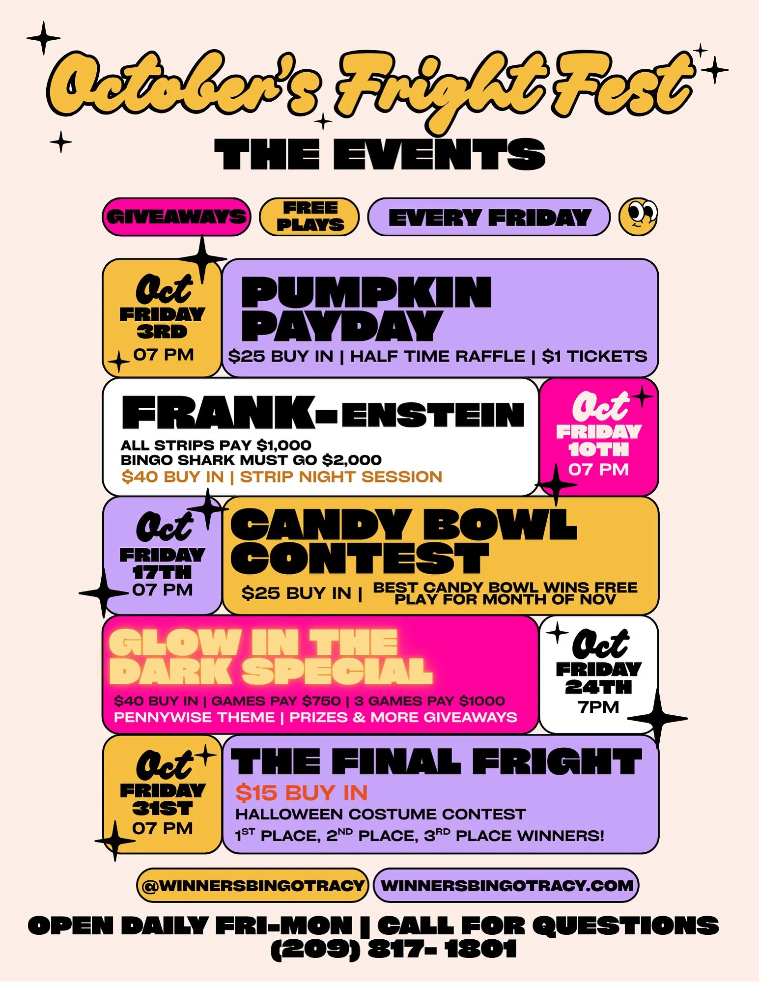 We play Pull Tabs at every session: Daub, Downline, Instants and Holds. Games paying $250 - $2,398.